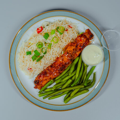 Honey Garlic Salmon, Chilli Garlic Rice & Green Beans (330G)