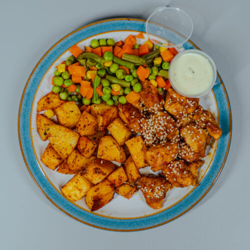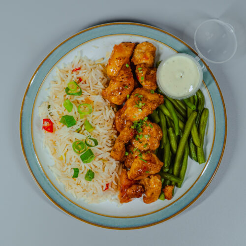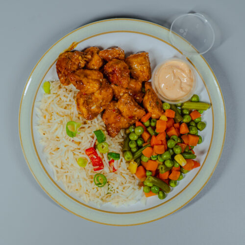 Bang Bang Chicken, Chilli Garlic Rice & Mix Veg